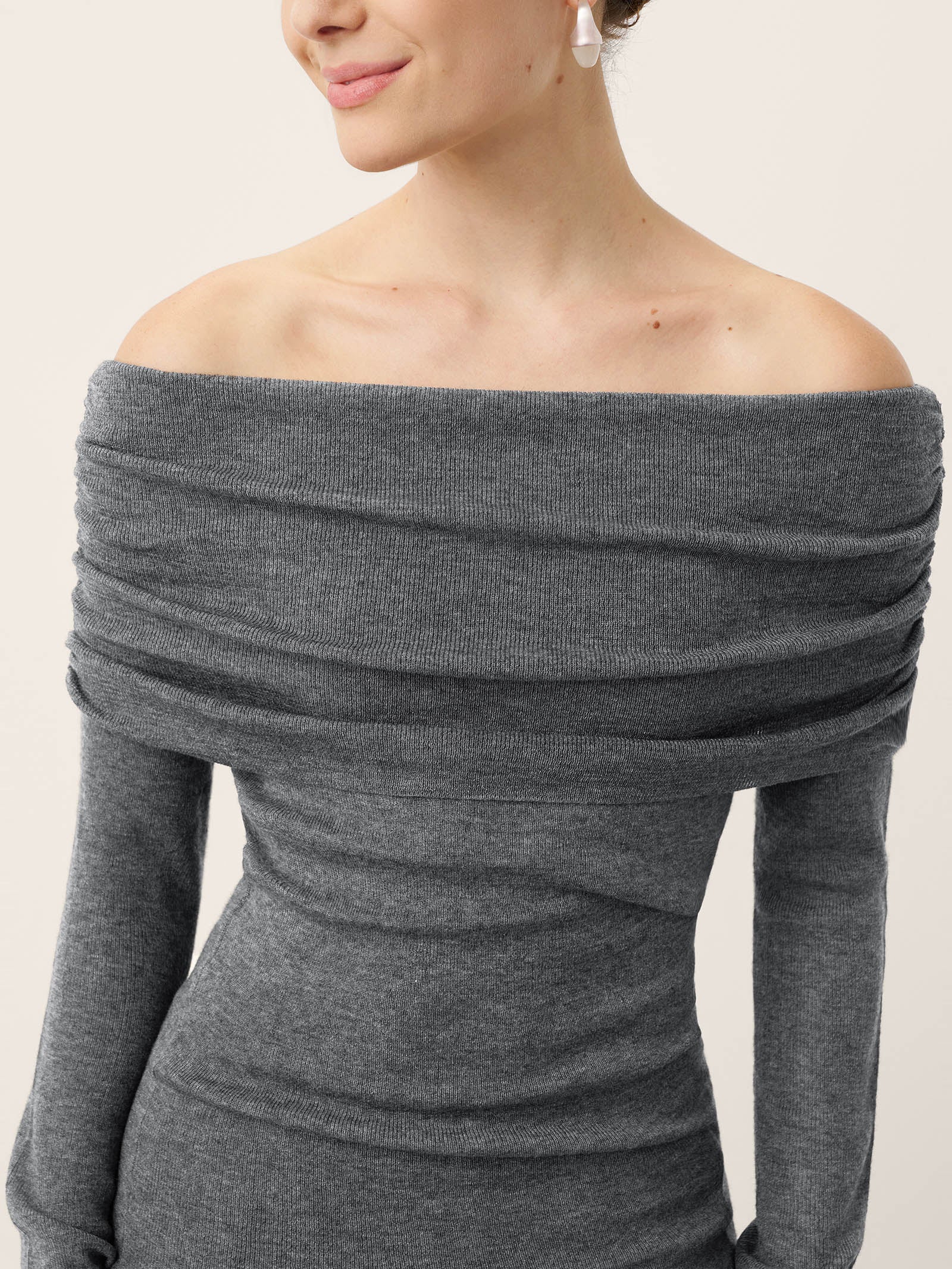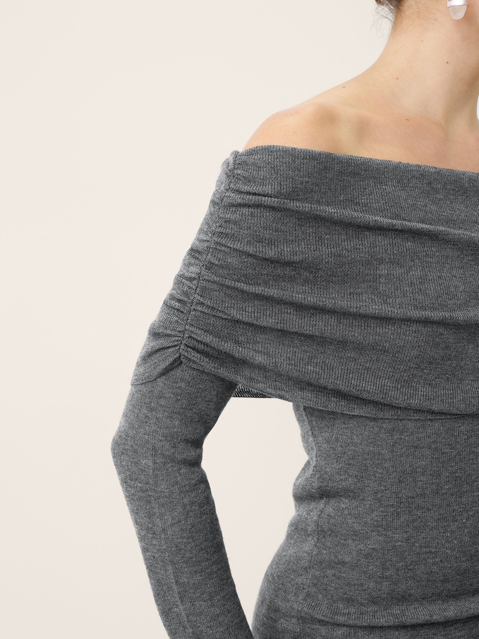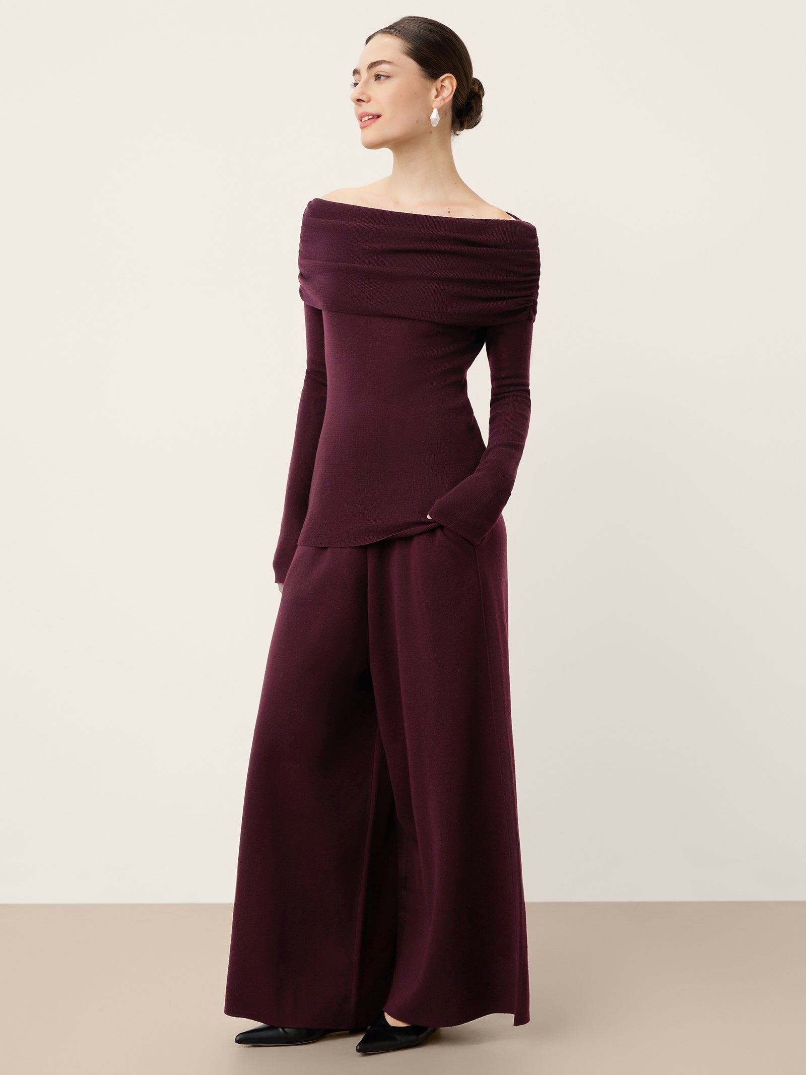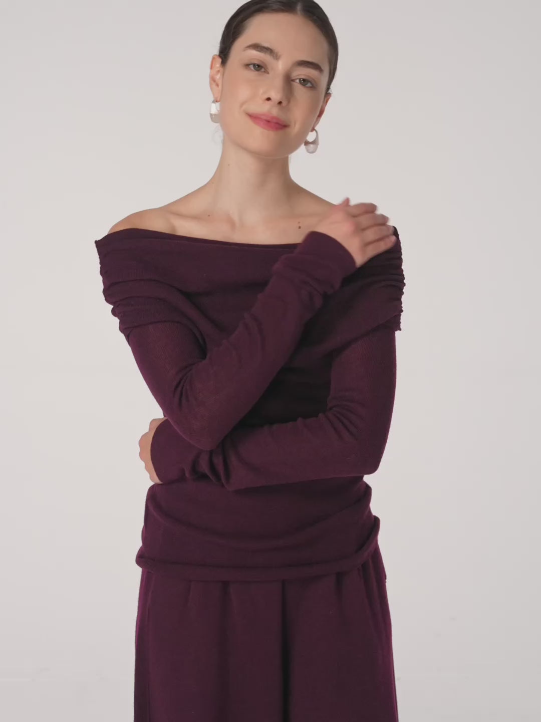 Merino Wool Oversized Lapel Convertible Off-Shoulder Top XYLIA